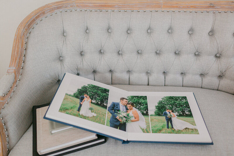 The Bride & Groom album included in The Wedding Experience Collection is a 10x10 linen or leather book.